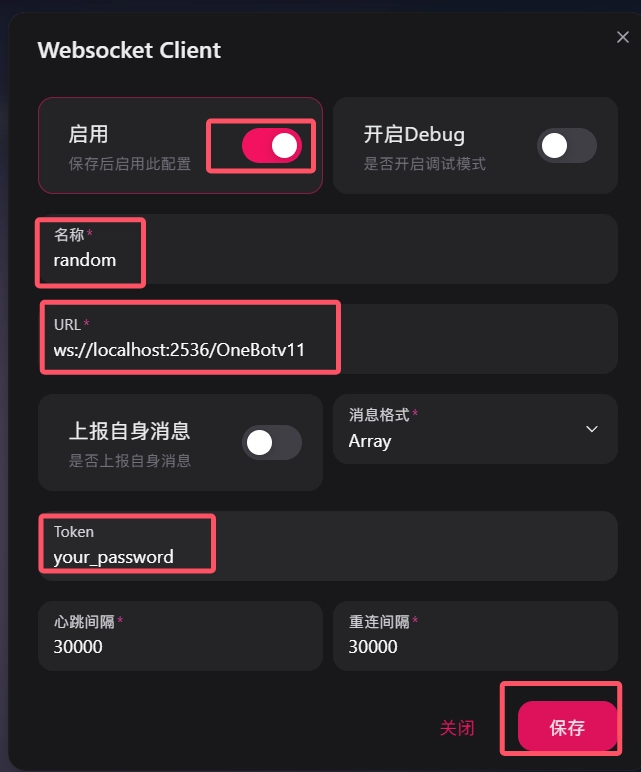 不行的话用url: ws://内网IP:2536/OneBotv11